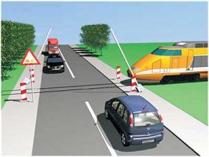 5 bodovaKako ćete postupiti u saobraćajnoj situaciji kao na slici na prelazu puta preko željeznicke pruge u istom nivou kada se crvena svjetla počinju naizmjenicno da pale?