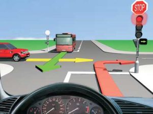 5 bodovaKako ćete postupiti u saobraćajnoj situaciji kao na slici ako je na semaforu upaljeno crveno svjetlo i dopunska strelica za skretanje udesno? (više tačnih odgovora)
