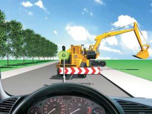 5 bodovaKako ćete postupiti ako se krećete putem na kome se izvode radovi u saobraćajnoj situaciji kao na slici?