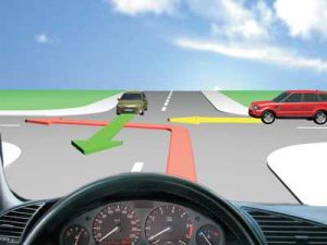 5 bodovaKako ćete postupiti u saobraćajnoj situaciji kao na slici ukoliko upravljate crnim automobilom?