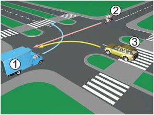 službenom polaganju. Prvih 30 pitanja odnosi se na provjeru znanja iz teoretskog dijela gradiva, idućih 10 na provjeru znanja iz poznavanja prometnih znakova i posljednjih 10 na provjeru znanja iz raskrsnica. Vrijeme je ograničeno na 40 min po pojedinačnom testu.