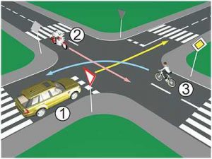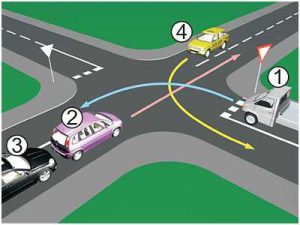 2 bodovaNa raskrsnici ili u susretu sa drugim vozilom, vozač je dužan propustiti vozilo: