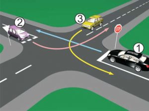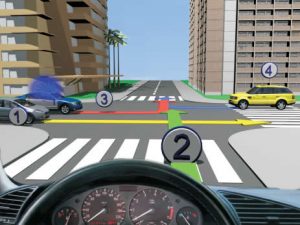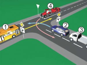 5 bodovaKoji je redoslijed prolaska vozila na raskrsnici u situaciji kao na slici?